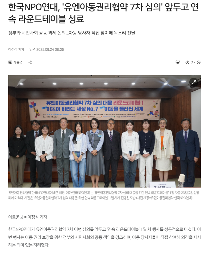 유엔아동권리협약 7차 신의 대응 라운드테이블 1